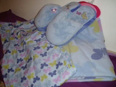 since my boyfriend was afraid my secret santa got me gifts he got, he gave me early christmas presents..hehe...a butterfly fleece blanket, pajamas, & slippers..hehe :) so yea and FINALLY all my exams are over & i can be free to relax and do what I please :)